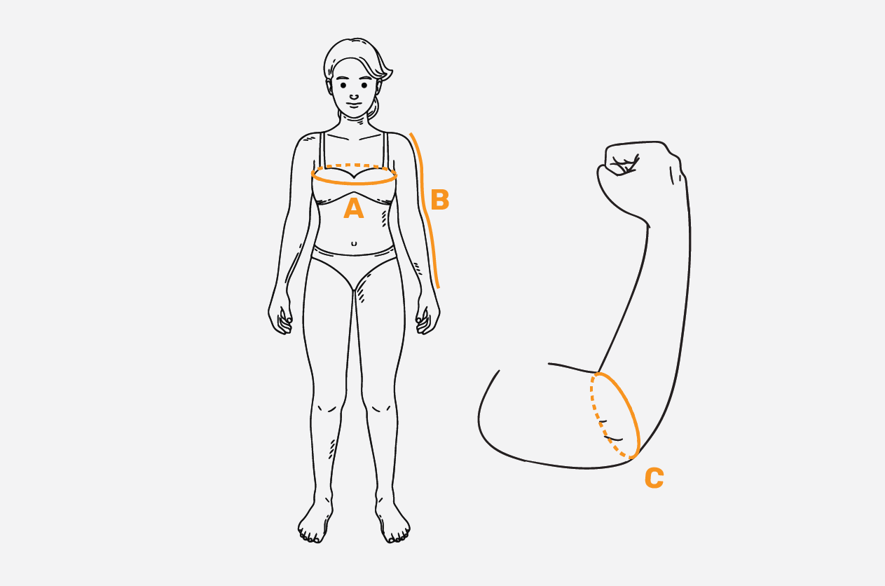 Postavte se vzpřímeně a paže spusťte volně podél těla. Ramena zasuňte dozadu. Nesnažte se vyklenout hrudník nebo zatínat zádové svaly. Metr vložte do podpaží, zepředu přes bradavky a na zádech přes lopatky, přes největší vystouplost prsou. Dbejte na to, aby byl metr vodorovný – pomůže stoupnout si k zrcadlu.