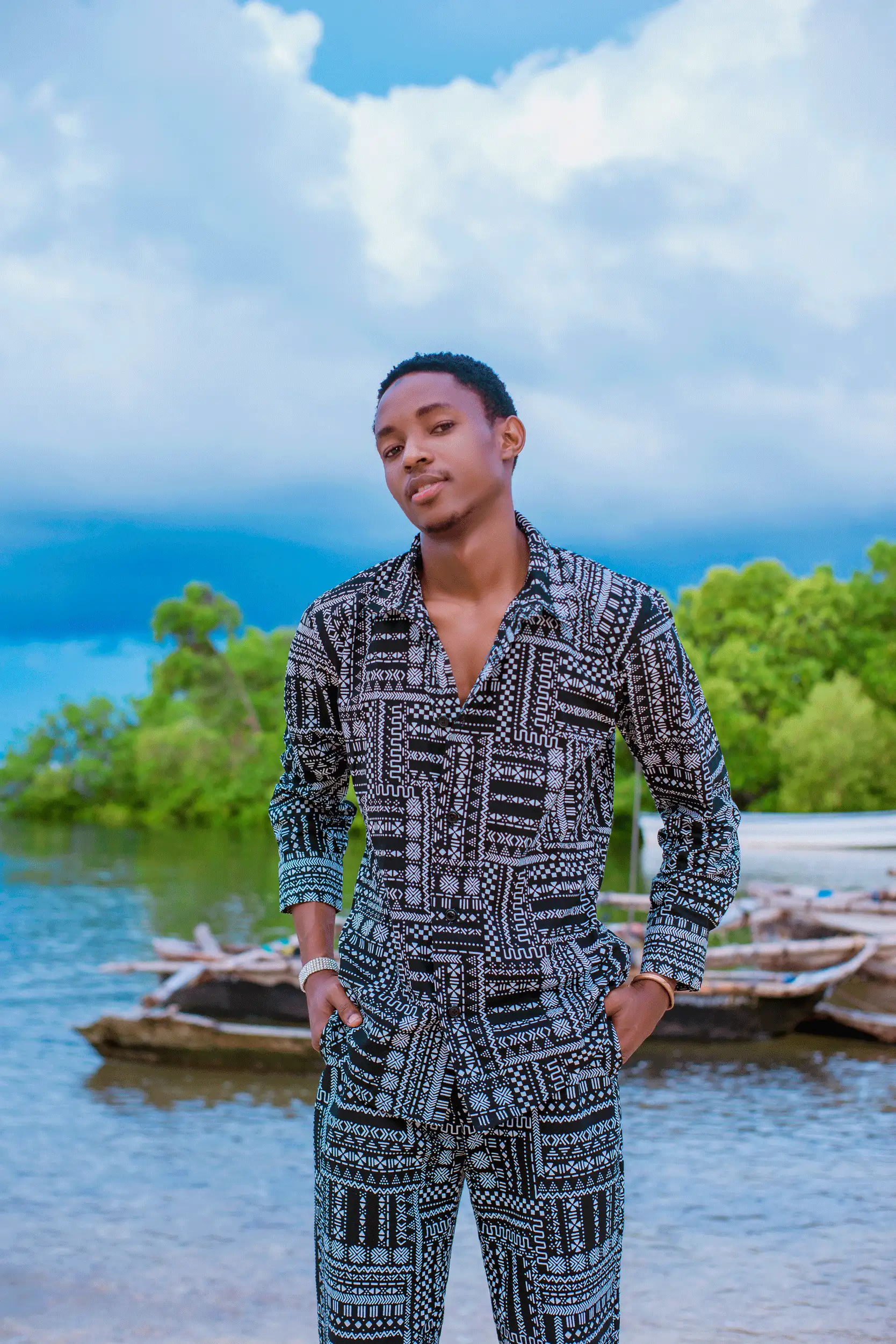 Pestré barevné košile s africkým potiskem pro muže. Spojte je s kalhoty nebo šortkami ze stejného materiálu a získejte jedinečný outfit s 20% slevou.